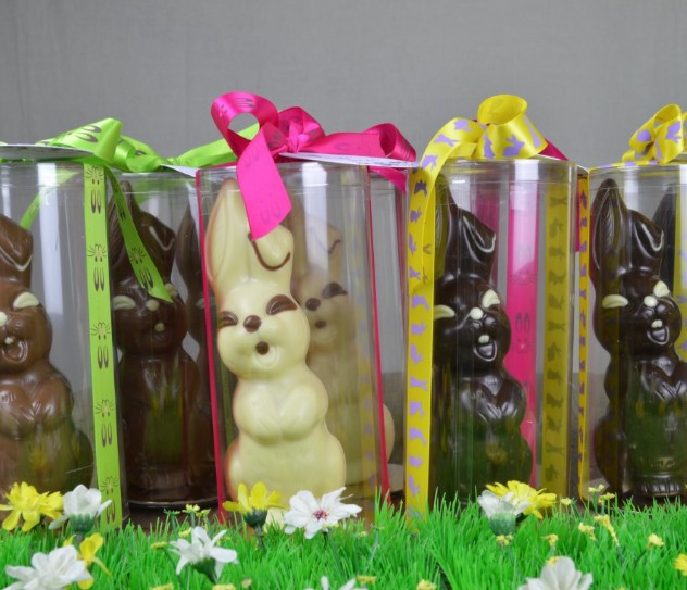Heel traditioneel in het voorjaar, maar daarom niet minder leuk en lekker. Schattige chocolade paashaas. Leuk om te geven en nog leuker om te krijgen! Verpakt als leuk cadeau in een plastic kokerverpakking.  Eén haas weegt circa 110 gram. Het formaat van de haas is 19 cm hoog.